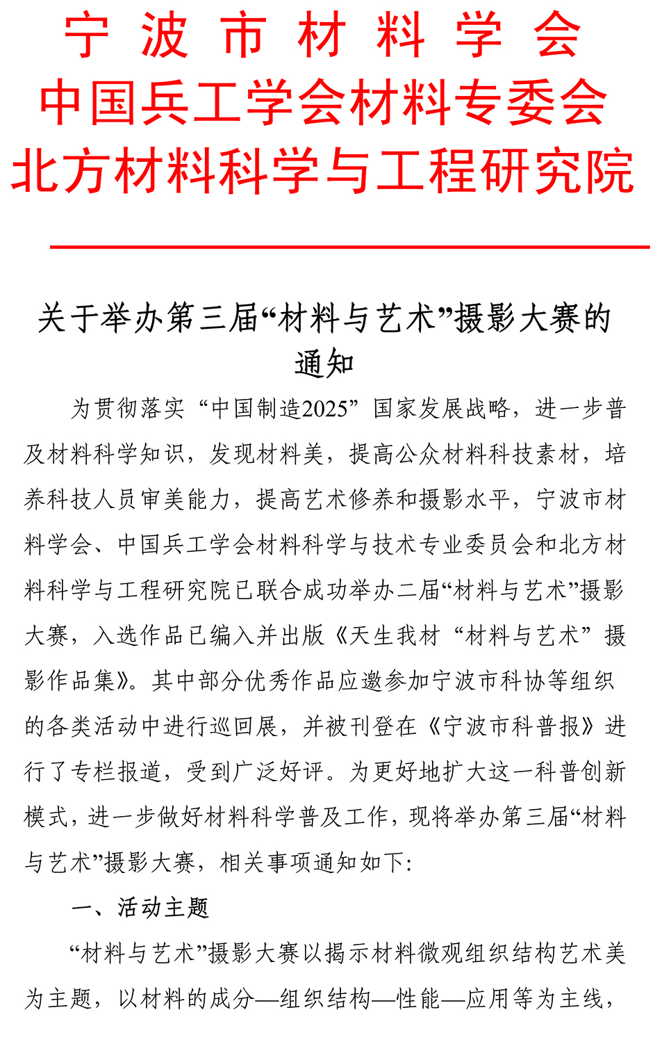 关于举办第三届“ 材料与艺术”摄影大赛的通知