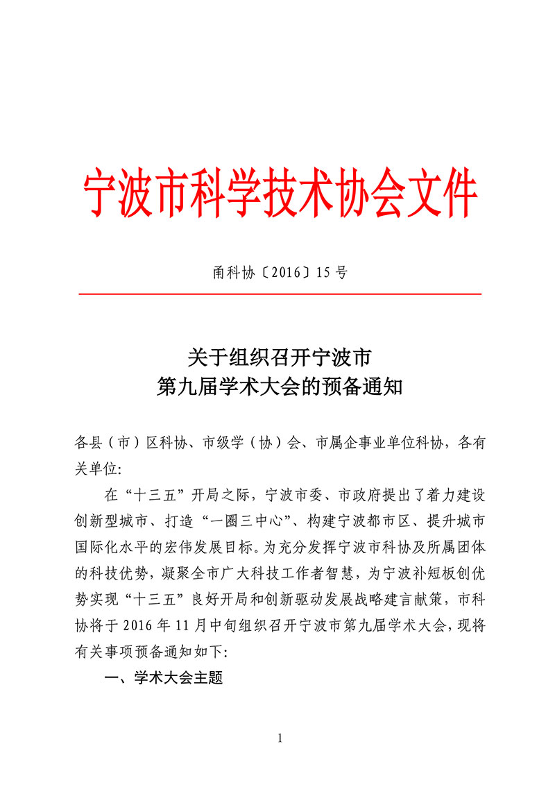 关于组织召开宁波市第九届学术大会的预备通知