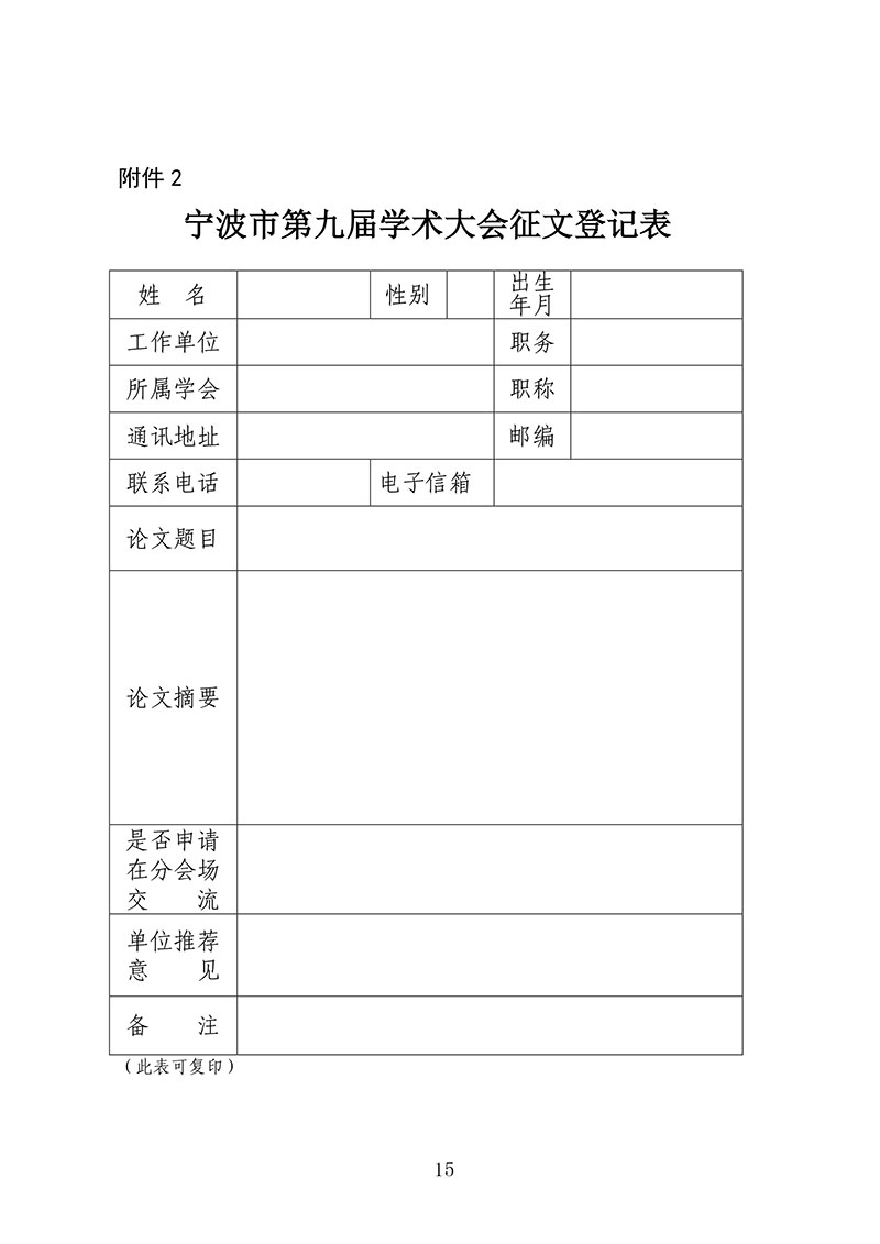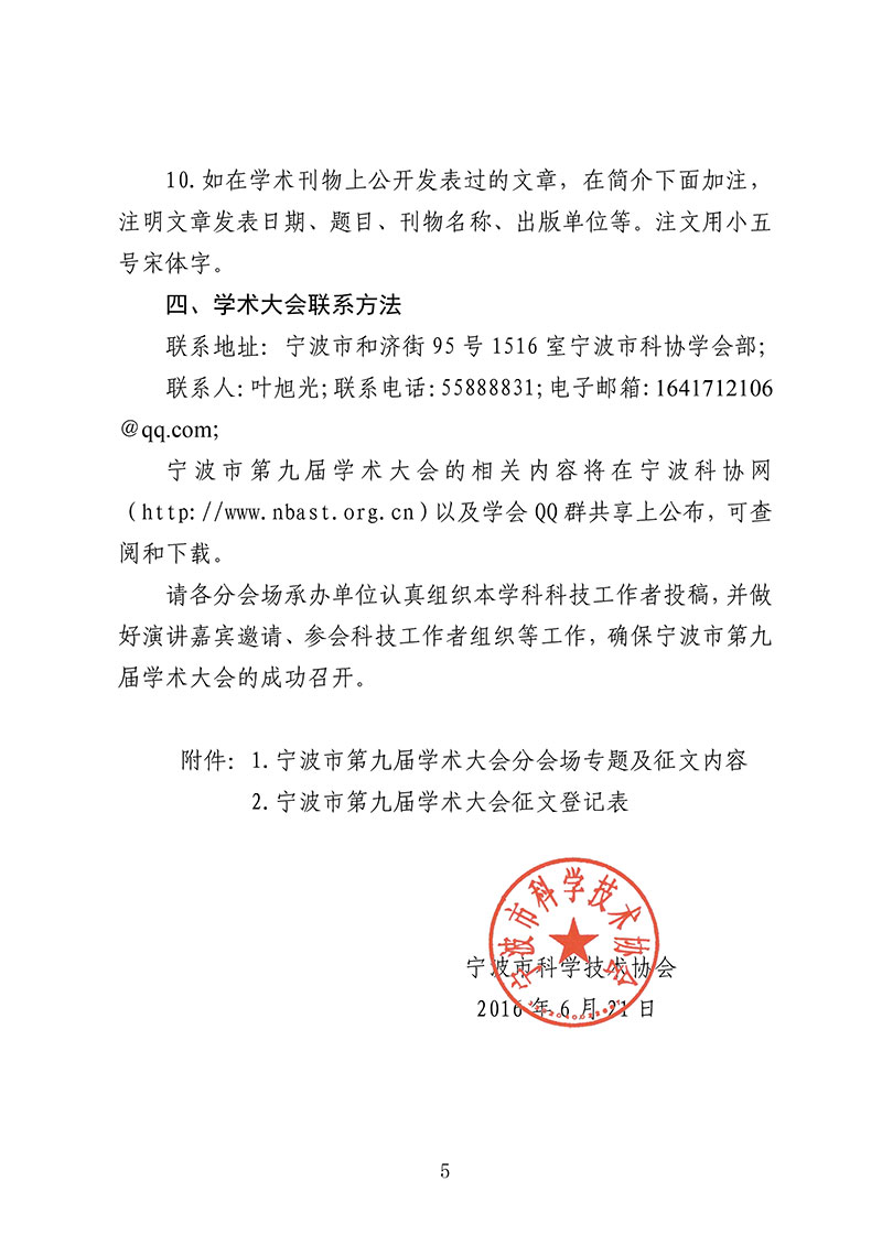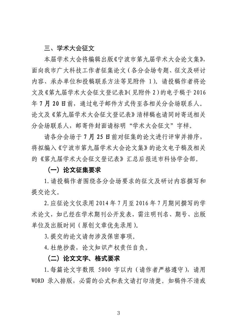 关于开展宁波市第九届学术大会征文的通知