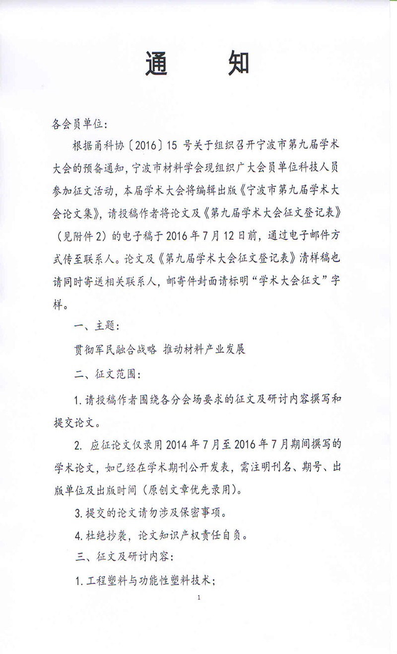 关于开展宁波市第九届学术大会征文的通知